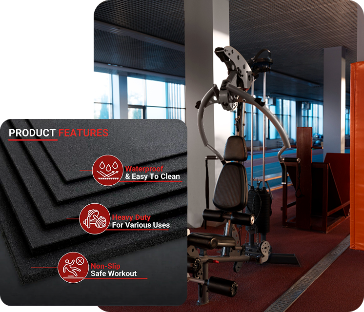 Give your commercial gyms or home workout areas a fresh new look with the best rubber flooring for gyms in Dubai. Our performance-driven indoor gym flooring reduces noise and protects your equipment. We supply & install tough rubber mats flooring, and also offer custom rolls or interlocking tiles that fit perfectly with your gym’s needs.